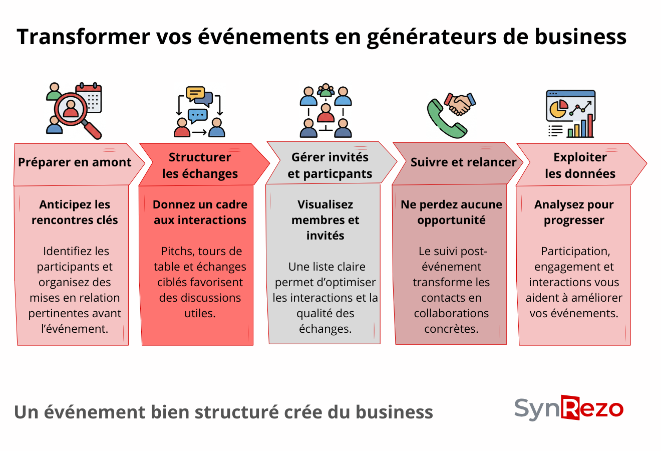 Alors, comment passer d’un événement “agréable” à un événement réellement utile et générateur d’opportunités ?