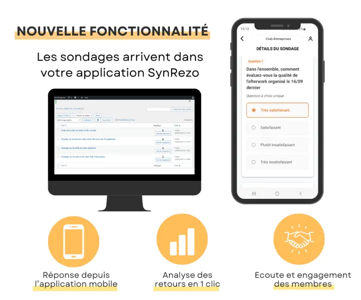 C’est pour y remédier que SynRezo intègre désormais une nouvelle fonctionnalité : les sondages, directement accessibles depuis l’application mobile.